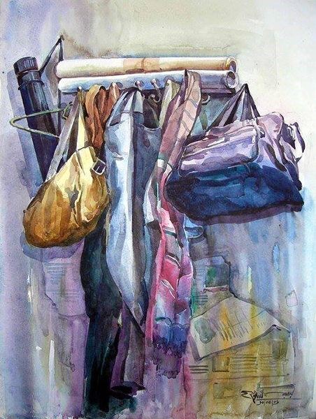 রাজু’দা জলরঙে জীবন আঁকতে চেয়েছিলো। রাজু’দা জীবনের সমস্ত কিছুকে নীল রঙে সাজিয়ে হো হো করে হাসতে চেয়েছিলো। হতে চেয়েছিলো নীলাশ্রয়ীॠ¤ ছবিটা তখনকার। আমি বলতে তখন কেবল আমিই শুধু। ছবিতে দৃশ্যমান বস্তুগুলো নিয়েই আমার সংসার। নিজেকে সংকুচিত করতে করতে একটা চৌকি আর দেয়ালে টাঙানো এইসব, এইসব নিয়েই আমার সংসার। অথবা এইসবই আমি। নামও দিয়েছিলো ‘বিধানের সংসার’। নামটা নিয়ে তারা হাসতো। হাসতাম আমিও। আমাদের সামষ্টিক হাসির ধ্বনিতে পাশের মেস থেকে সাইফুল ভাই মেয়েলি ঢং করতে করতে বেরিয়ে এসে কি বলতো মনে নেই। কিন্তু তার সেই মেয়েলি ঢংয়ে বলা কথাগুলোর এখনও আমি যথার্থ অনুবাদ করতে পারি। দো-তলায় দাঁড়ানো সনি আপার হাসিটারও। রাজু’দা এঁকেছিলো একদিন। এঁকেছিলো ইচ্ছে পাখির ডাকে একদিন বৃষ্টি হবে এমত সম্ভাবনায়। অথবা অজস্র সাইরেনের শব্দ ও সংকেতে কেটে যাবে এই অমানিশা, এই ভেবে। হয়তো।