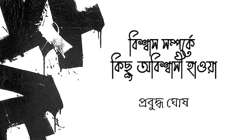 বিশ্বাস এমন এক আটপৌরে শব্দ, যা আমাদের ঘরদোরে মনের আনাচ-à¦•à¦¾à¦¨à¦¾à¦šà ‡ ঝুলের মতো লেগে থাকে। পরিচ্ছন্নঠা ভালবেসেও দু-একটা ঝুল যেমন লাইটের পাশে, সিলিং-র কোণায় লেগে থাকেই, বিশ্বাসও তেমন টিঁকে থাকে। সযত্ন অবহেলায় বিশ্বাস দানাপানি পেয়ে যায় ঠিকই। অতি আধুনিক অতি-বৈজ্ঞাঠ¨à¦¿à¦• মনও অনেক রীতি-à¦¸à¦‚à¦¸à§à¦•à ¦¾à¦°-বিশ্বাস ত্যাগ করতে পারে না। ফুরনো ঐতিহ্যের দায়ে, ঝ্যালঝ্যাল ে নস্ট্যালজি য়ার টানে, বাসি ঘিয়ে ভাজা খাবারের মোহে বিশ্বাস আঙ্গুলে পাথর পরে, গলায় মাদুলি। যোগ দেয় সনাতনের ধুয়ো তোলা উন্মাদ ভক্তমিছিলৠ‡, মিশে যায় হননোল্লাসৠর যজ্ঞে জ্বলে ওঠা সমিধের জোগানে। বিশ্বাস, অন্ততঃ ধর্মের তাপে ও চাপে কয়লা হয়ে যাওয়া উপমহাদেশে নির্লিপ্ত উদাসীন রাখে আমাদের, সায় নিয়ে নেয় জনতোষী ধর্মাচরণেॠএই বিশ্বাসের গায়ে পবিত্রতার ধুনোগন্ধ, এই বিশ্বাসের মুখে চেরাগের ফলিত আলো; একে প্রশ্ন করা চলে না!